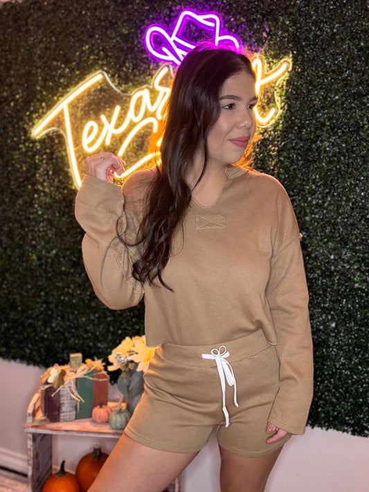 Solid Cotton Woven Cute Top & Shorts Set TAUPE