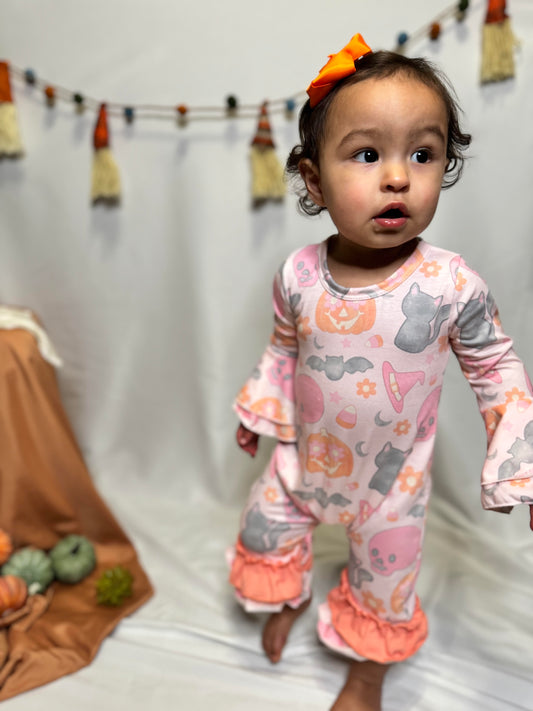 Texas Toddler Washed Pumpkins & Bats baby romper
