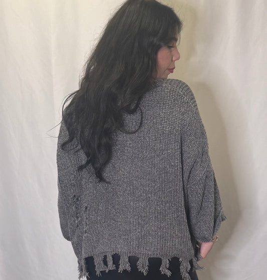 SaleGray Ripped Sweater