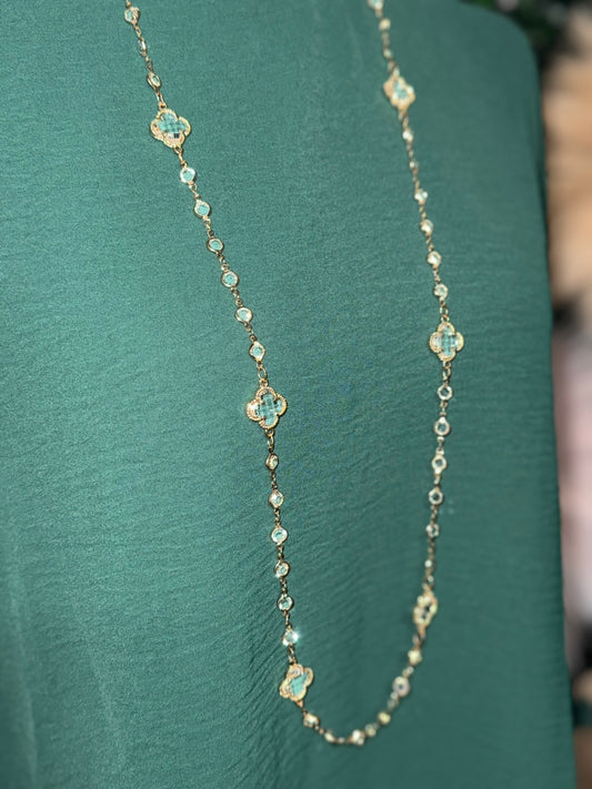 Clear Gold Clover Stone Statement Necklace