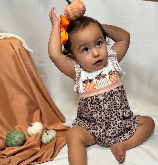 Texas Toddler Cheetahs & Pumpkins Embroidery Dress